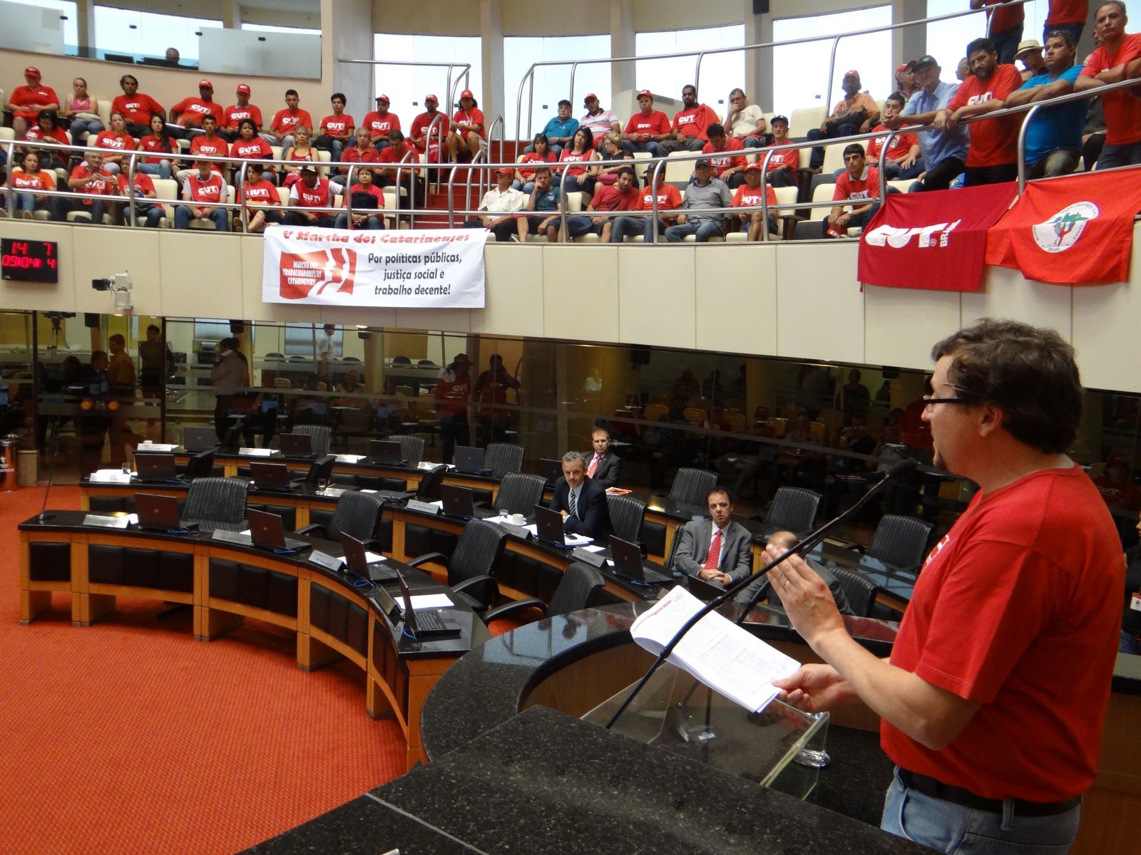 A marcha que está na sua quinta edição, apesar das grandes mobilizações já realizadas em anos anteriores, neste ano depois das jornadas de manifestações em junho de 2013, o sentimento dos trabalhadores que sempre estiveram na luta, era diferente, era um sentimento de pertencimento àquele espaço. “Foi sempre com muita batalha que conquistamos os direitos dos trabalhadores, nada para o trabalhador vem de graça então quando vamos às ruas são com pautas e com foco de enfrentamento àqueles que querem reduzir os nossos direitos”, salientou Neudi Giachini, presidente da CUT-SC.