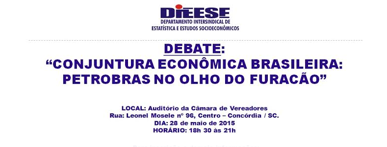Na próxima quinta-feira, 28 de maio, o Dieese realizará o debate “Conjuntura econômica brasileira: Petrobras no olho do furacão”, no auditório da Câmara de Vereadores de Concórdia.
