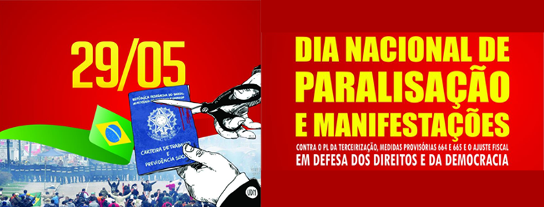 Mesmo você que hoje é terceirizado, com o rebaixamento geral de salários e direitos, também será prejudicado. Para lutar contra essa tragédia, nós, trabalhadores do Brasil, estamos parando neste dia 29. Se você é assalariado, participe dessa luta, cruze os braços, para que as conquistas históricas de nossos direitos sejam respeitadas por gente como o deputado Eduardo Cunha.