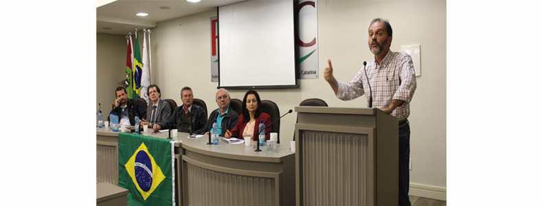 A mesa do debate foi coordenada pelo diretor sindical do Dieese-SC, Ivo Castanheira, e contou com a participação de representantes da CUT, Nova Central, UGT e Força Sindical. No inÃcio do evento, o Dieese prestou homenagem ao companheiro Moacir Pedro Rubini, secretário geral da Feteesc e representante da UGT, que faleceu em junho de 2016.