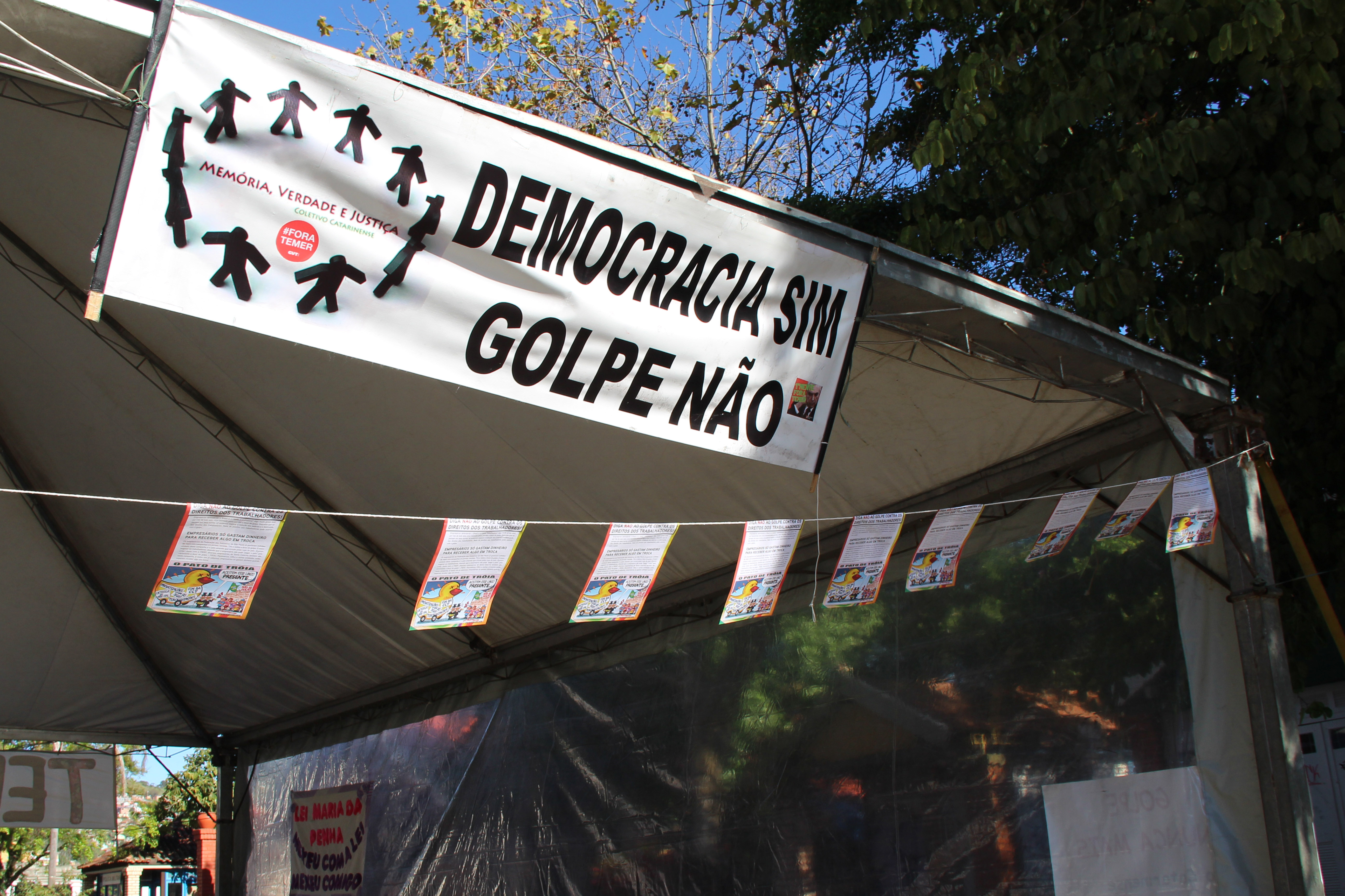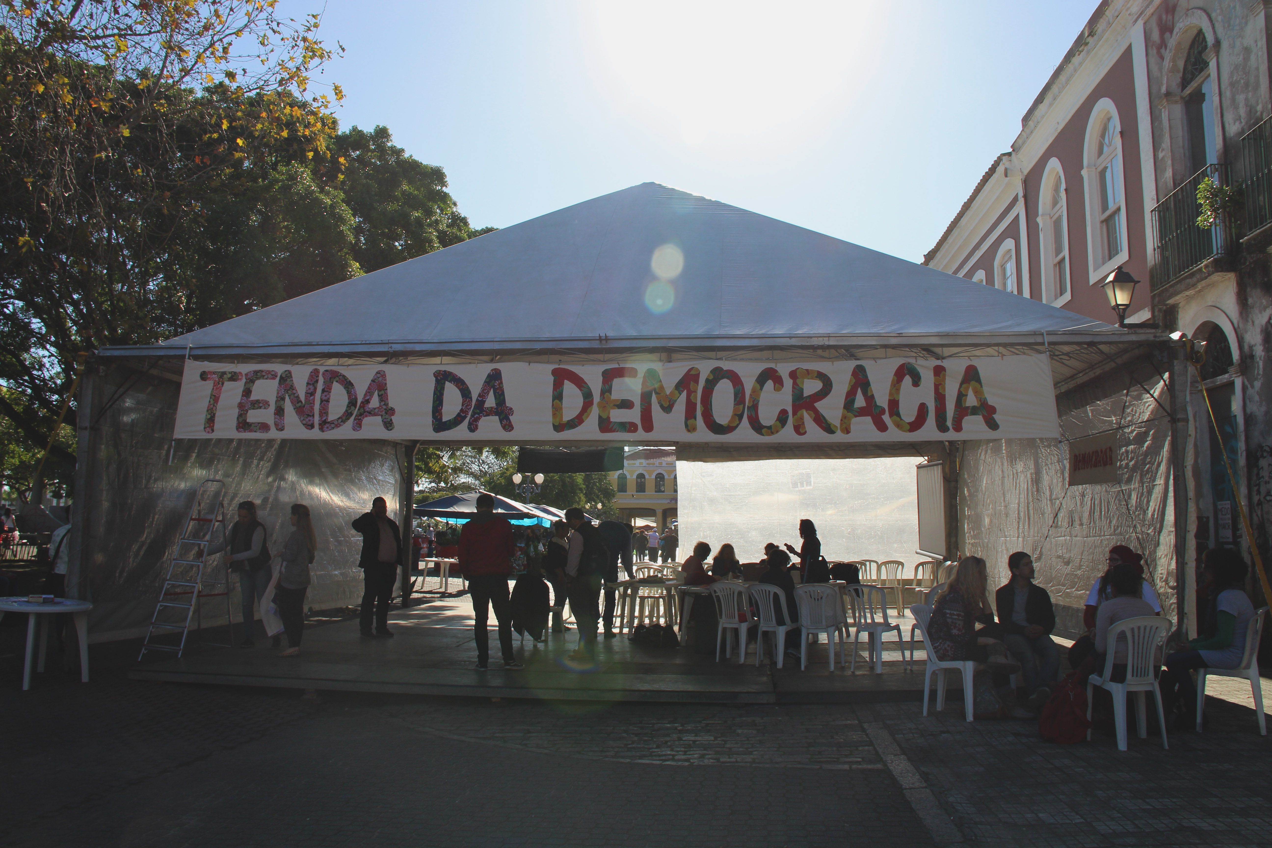 Com o objetivo de servir como ponto de referência para o desenvolvimento de ações políticas, culturais, artísticas e de formação contra o Golpe instaurado no País, foi instalada no Largo da Alfândega, a Tenda da Democracia. O espaço, no centro da cidade, também tem o intuito de permitir um diálogo direto com a sociedade, sem a mediação da mídia tradicional, e  pretende estimular a participação da população em atividades. A atividade é uma iniciativa da Frente Brasil Popular.