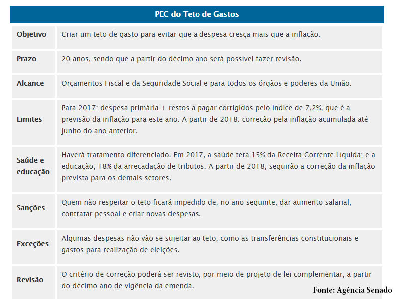 Por 61 votos a favor e 14 votos contra, o Senado Federal aprovou nesta terça-feira (29/11) a PEC do Teto de gastos que congela por 20 anos os gastos públicos.  A votação em segundo turno da PEC 55 está programada para 13 de dezembro.