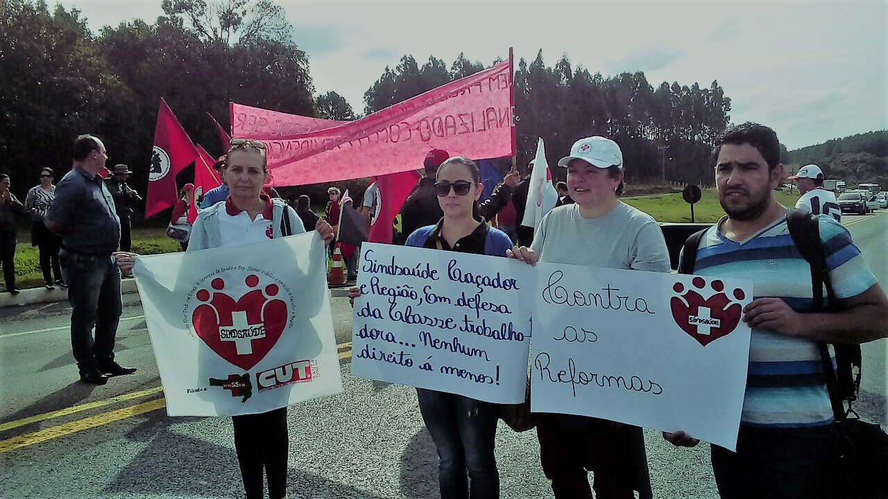 No oeste de Santa Catarina a mobilização começou de madrugada e se estendeu até o final da tarde. Os diretores do Sindicato dos Trabalhadores da Saúde de Chapecó participaram das mobilizações.