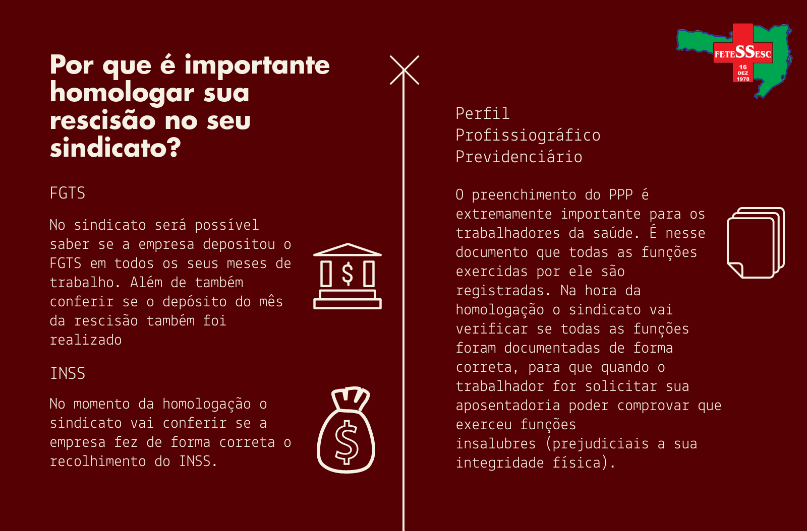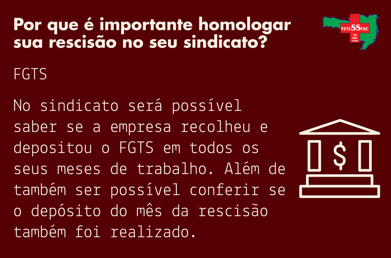 A Reforma Trabalhista revogou a ‘regra’ que previa que as rescisões contratuais só eram válidas quando homologadas pelo sindicato da categoria do trabalhador. Para informar os trabalhadores sobre a  importância de continuar realizando homologações de rescisão no sindicato. A realização da homologação no sindicato é uma forma de fiscalizar a rescisão contratual feita pelo empregador para assim garantir que o trabalhador receba todos os seus direitos, como as verbas contratuais necessárias.
