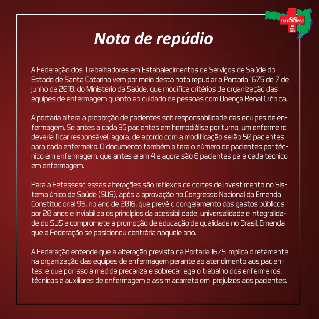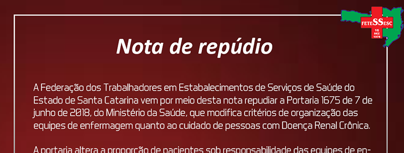 - Nota de repúdio – Mudanças nos critérios de organização das equipes de enfermagem