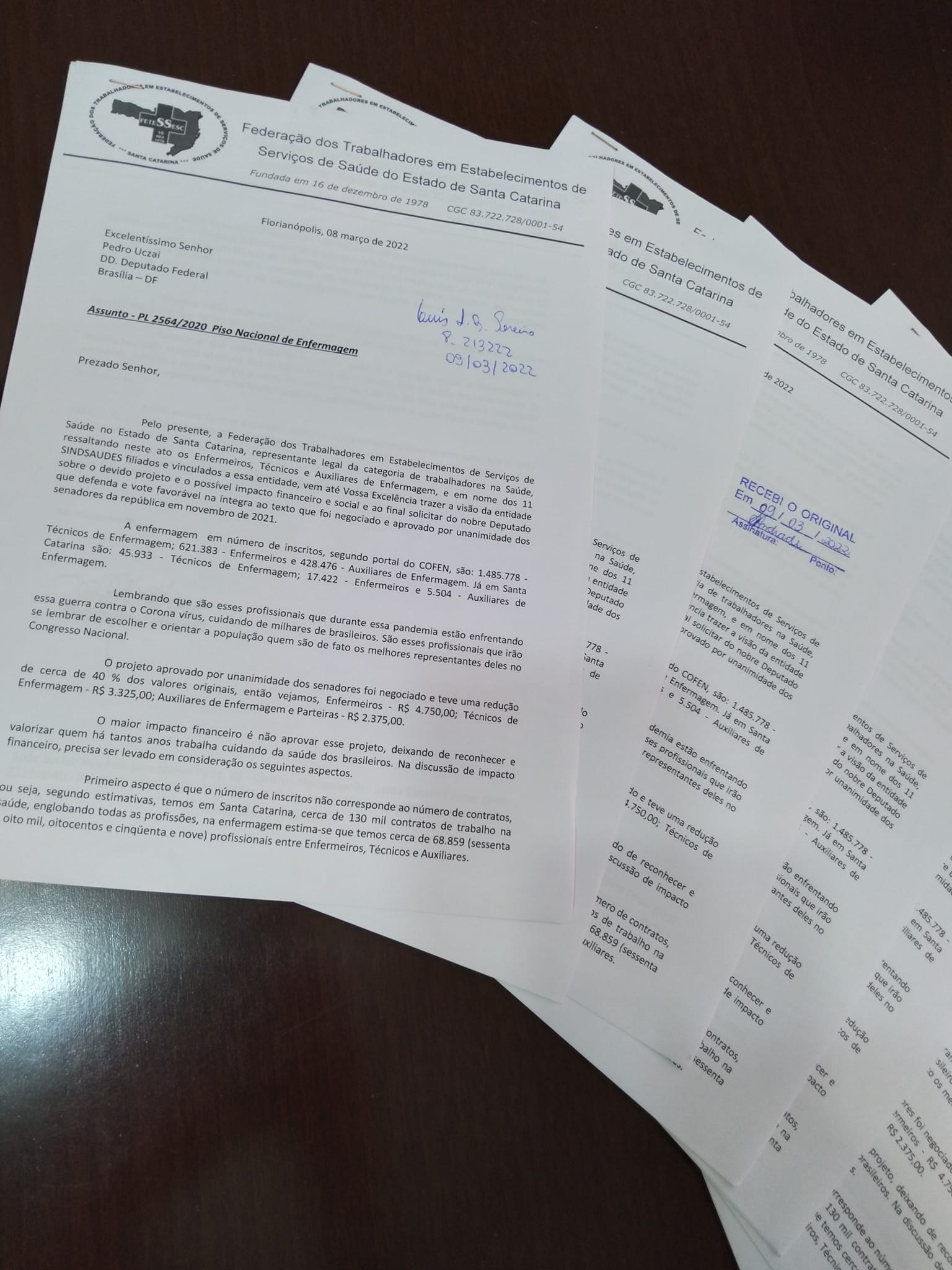 A Federação dos Trabalhadores em Estabelecimentos de Serviços de Saúde de Santa Catarina – Fetessesc tem se mobilizado para pedir que os 16 deputados federais do Estado votem a favor da aprovação do piso salarial nacional da Enfermagem. O PL 2564/20 teve a urgência aprovada pela Câmara dos Deputados no último dia 22 de março, sendo que o mérito da proposta será votado em abril.