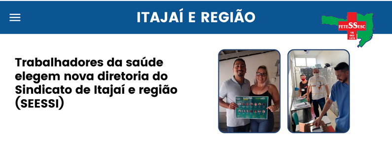 Nos dias 1 e 2 de fevereiro, o Sindicato dos Trabalhadores da Saúde de Itajaí e região (SEESSI) realizou seu processo eleitoral para a escolha de uma nova composição de diretoria para a entidade. A chapa com o tema “Por um sindicato da saúde forte” foi eleita com 97% de aprovação.