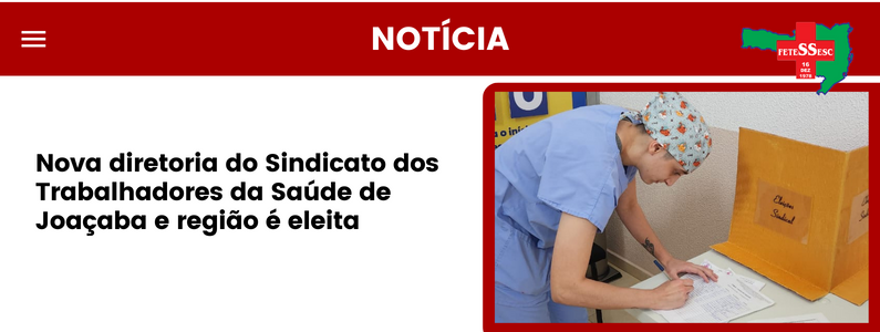 A diretoria da FETESSESC parabeniza o Sindicato pela realização deste processo eleitoral, e deseja à nova diretoria um mandato repleto de conquistas para os trabalhadores e trabalhadoras.